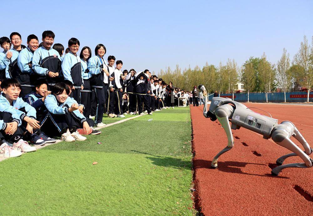 学生在和机器狗互动。李谦摄