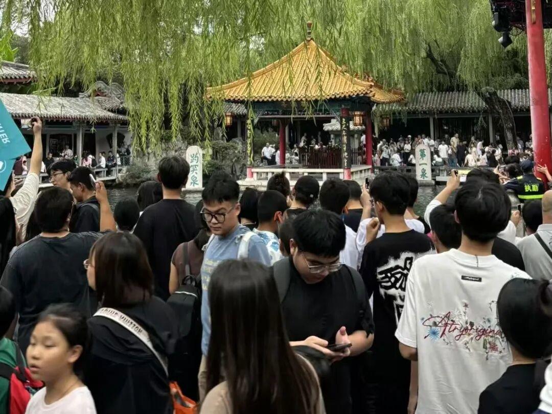 10月1日,国庆假期第一天,济南趵突泉人流量爆满,人挤人挤人模式再度上演。